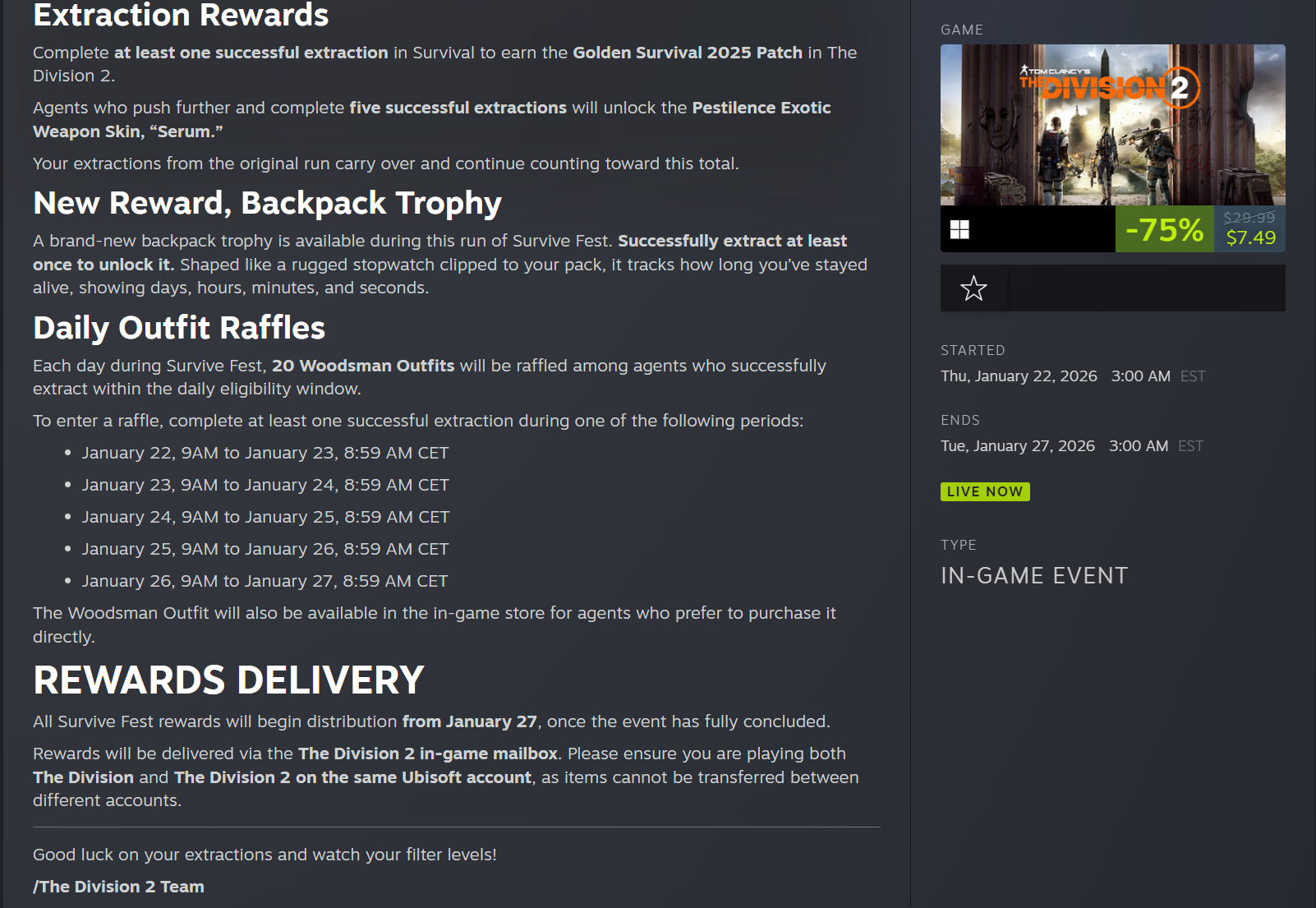 I get the vibe of a game that has a well maintained and very thought out gaming world. I didn’t play the division 1, but this game has to be a very well upgrade on the ancestor. The way that the game has so many layers to it is universal to anyone.